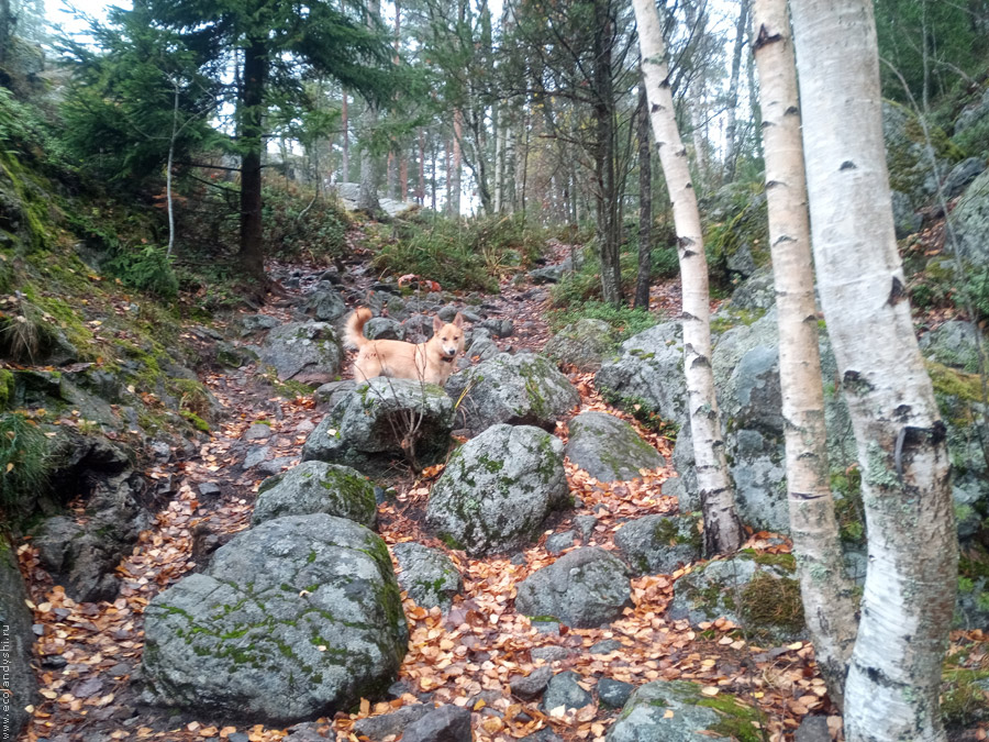 Напомним, Большие скалы — очень популярный у туристов, альпинистов и скалолазов Санкт-Петербурга (и не только) скальный массив, входящий в состав особо охраняемой природной территории (ООПТ) «Озеро Ястребиное». Эта ООПТ находится в 150 км к северу от Петербурга на границе с Карелией, в 10 км от Кузнечного. Территория ООПТ большая (630 Га плюс 2000 Га охранной зоны) и местами представляет собой сильно пересеченный скальный ландшафт. На авто попасть туда можно с юга, со стороны Севастьяново, и с севера, со стороны Куликово (и там и там надо будет оставить машину и пройти килолометра полтора пешком). Также можно прийти пешком от станции Кузнечное, по так называемой тропе Хо Ши Мина.