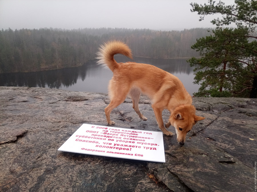 Взяв табличку, пару мешков для мусора и собаку Госю, я отправился туда, по пути заскочив на самую высокую скалу массива — Парнас.